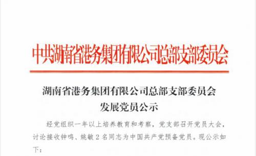 湖南省港務集團有限公司總部支部委員會發展黨員公示
